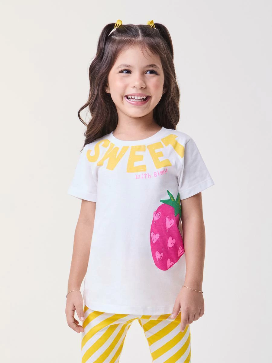 Conjunto camiseta e bermuda cotton morango listras amarelo Bimbi FA306: estilo e conforto para os dias de brincadeira!