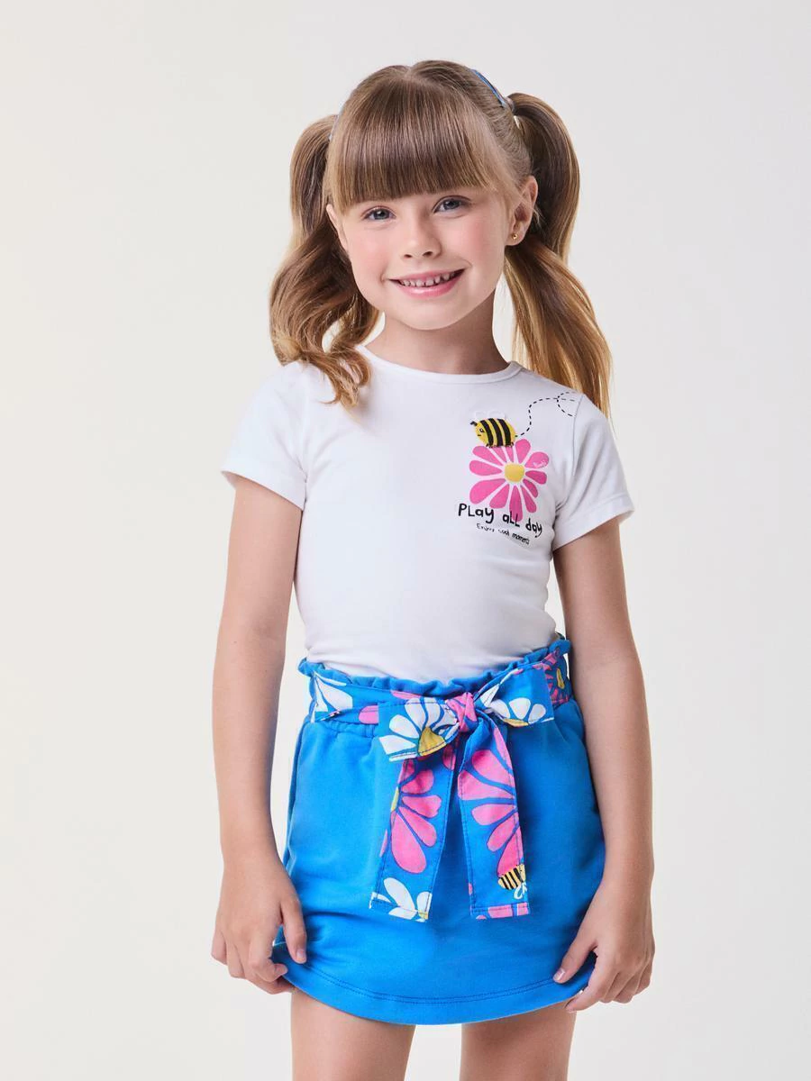 Conjunto Infantil Blusa e Saia com Short Interno Azul Abelhinha Bimbi FA303 – O charme e o conforto que sua pequena merece!